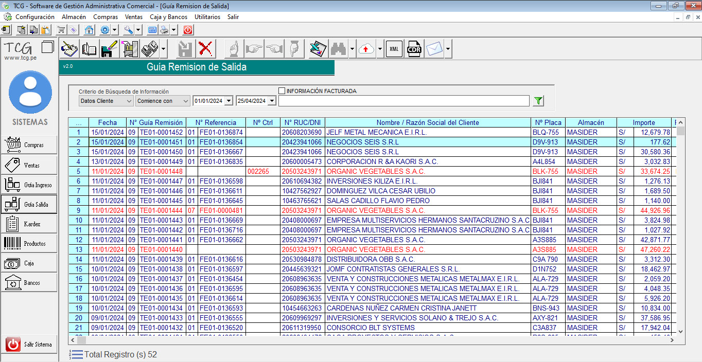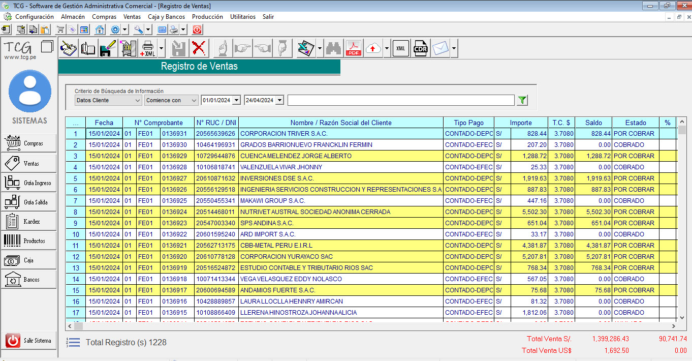 Sistema que les permite llevar un control de manera ágil, simple y efectiva de todas las operaciones comerciales de su empresa, optimizando cada uno de sus procesos administrativos, usted erradica todos los puntos débiles que tiene su organización y las prepara para enfrentar con agilidad nuevos retos, abarcando las áreas de compras, ventas, almacén, tesorería, cuentas corrientes, Etc. Ud. podrá contar con una herramienta de gestión para una toma correcta de decisiones en el momento oportuno, manteniéndose informado del estado de cuenta de los deudores y acreedores hasta conocer el ranking de los productos más vendidos, enterarse dónde existen costos por optimizar, o qué posibles cuellos de botella puedan existir en el área comercial. El software de gestión es el que le permite decidir en situaciones presentes y realizar planes a futuro.